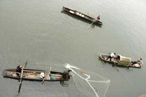 Fishing in the Jialing river with weighted nets which sink over the fish