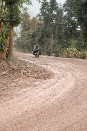 The road to Muchuan and our next planned stop of Kunming - funny how things change when you're cyclotouring |