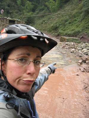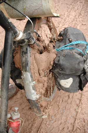 As if the bloody bike wasn't heavy enough already! Gloopy, sticky mud - the sort of consistency one dreams of for icing a cake or plastering a wall. It wasn't possible to push the bikes let alone ride them