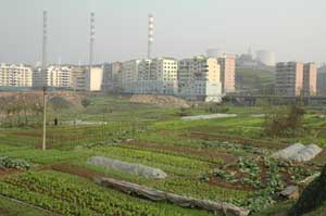 21st December 2005 - Jiangjin to ChongQing - 89km The small road between Jiangjin and ChongQing started up brilliantly. We were blessed with some sun and we even saw our shadows. This has not happened for the last 18 days! As we approached ChongQing, we entered the urban sprawl of the megapolis (30 million people live here!) and it was an never ending succession of newly built areas, flyovers and super busy roads. After crossing one of the bridges over the Yangtze, it struck us straight away that for the first time, there were only two bicycles around and they were ours! The city is built on a hilly peninsula between the Yangtze and Jialing rivers and is a real challenge on the legs. To make matters worse none of the roads has a cycling lane. We reached the city centre truly exhausted after our night partying and a very long hilly day cycling. We booked a VIP room in a four stars hotel with a swimming pool for the first time of our trip (around £18, big spenders!)