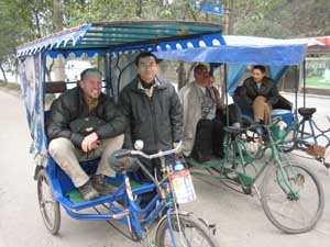 24-26th November 2005 - Xi'an Visiting and being normal tourists again We spent 4 nights at a nice hotel run by Mr Jim Beam and joined in all the tourist sights; the terracotta warriors, big goose pagoda, warm springs, temples and bell towers. Xi'an is a surprisingly large city - 7.8 million people. It is a huge place mainly taken over by modern high rise developments and wide boulevard style streets so the ancient feel has been eradicated. Fortunately the pleasant small streets of the muslim quarter remain and they are a real bustling assault on the senses. After our three days of rest (from cycling) we are now heading off towards Chengdu in Sichuan province - Giant Pandas and chillis await (but not in the same dish).