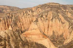 Loess plateau dropping away dramatically from the terraced fields above