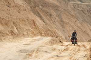 Cycling through the construction site of the new dam - the workers and lorry drivers were surprised but very helpful