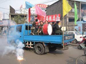 Wedding party and bangers in Pingyao 17th November 2005 - Linfen to Km5 of road 233 - 64 km We were finally able to turn eastwards towards the mountains and leave "coal hell" valley behind. We had to follow it so far because of an area closed to foreigners further North (see our section on cycling in China). We went straight up the mountains and by lunch time we were finally able to see some blue sky again as we climbed steadily above the smog, for the first time in a week! The rest of the day was very much up (another record was set: it was our most climbing in a day - 1289 m), but we were happy to be able to breathe normally and to be amongst smiling people again, waving and laughing at us as we passed by.