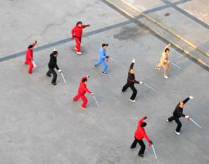 (above) Morning exercise in China, it certainly beats breakfast TV (left) Monkey face from the Shaanxi museum