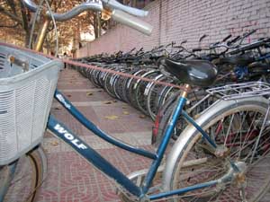 Cycle parking is provided everywhere in Chinese cities, but there is no room to squeeze in a loaded touring bike