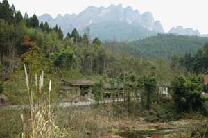 We finished the day following a mountain stream uphill into another beautiful mountain. As we nearly reached the top, there was a chairlift, a range of huge cliffs and some temples. Terry was waiting alone for poor struggling Isa and it did not take long before he was offered food and lodging for the night. A woman had the good idea to bring out a leaflet about the area in English and we decided to spend the night in her house. There was indeed many things to see in the area and we decided to go and explore the temple and garden on top of the cliffs the day after. In the evening, she cooked a lovely meal for us with the local JianMen tofu. Even Terry was forced to admit that the tofu was excellent! |