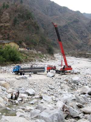 Flood prevention? A well needed new irrigation scheme? A new otter sanctuary? No it's just a big crane to lift the beautiful rocks from the river bed so they can be sold to wealthy gardeners in Xi'an - it must be one hell of a rockery! |