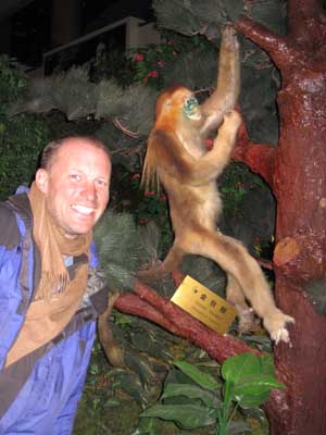 It was only after reaching the town of Foping that we understood what the Qinling mountains and the tunnel are all about. We passed a visitor centre about Foping Nature Reserve. It was late, but the centre was opened especially for us. There we learnt that the Qinling mountains are a natural border between North and South China, between temperate and sub-tropical climate, and between the Yellow river and the Yangtze river catchment areas. On top of this, the nature reserve has the biggest number of pandas in China (about 100), 600 golden monkeys, lots of Takins (cow-antelope) and millions of birds we never saw before (all nicely stuffed in the museum). The guide told us that the tunnel through which we had ridden had been constructed to allow the pandas to trot peacefully along the mountain tops without having to fear the mad beeping bus drivers of the G108. If we wanted to see pandas, no problem, but we had to climb back up the mountain, so we gave them a miss. But this day and the sudden change in landscape made the cycling between Xi'an and Chengdu very worth while. |