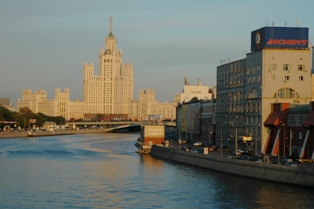 (left) View over the river towards one of the Stalinist "Seven Sisters".