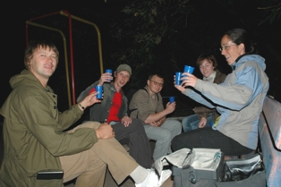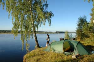 Later, as we were preparing for bed, three loose dogs started staring at us from a distance. In the dusk, it was quite spooky and we armed ourselves with big sticks, not an easy task because most of the small branches have been burned in the fires the Russians always light whilst camping. By ten o'clock, we were finally ready for a very noisy night as we were also aware of a mouse which had visited our bags the previous night. But nothing happened. Instead a wind from hell rose in the middle of the night and the rain started pouring down.