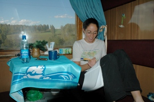 Three days locked in a train, raaahhh! It is hard after four months spent outside on the roads. Still it was nice to chill out properly. We did not have the computer anymore, so we spend lots of time reading, writing, eating and drinking. The landscape by the window is pretty, but mainly flat and not very varied: woods, dachas villages, more woods, big fields. We really appreciated covering such a great distance in only three days. The only break was to stretch our legs at the regular stops. We were hoping to see lots of babushkas selling goods, but they were only at a few stations. Maybe the babooshkas are now forbidden as there are now plenty of ugly kiosks with tiny openings to conduct the transactions.