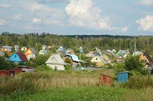 Typical Russian holiday homes known as Dacha's. These collections of wooden buildings can be found in the countryside around all towns and cities.