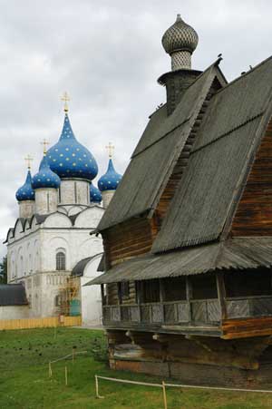 We visited the famous town of Suzdal. We did not know quite what to expect, and we found a lovely big village nestled by the river, with a multitude of churches and monasteries all around. There are said to be 30 churches. We have not counted that many, but they are at every corner of the town. Obviously there is the obligatory kremlin as well, whose cathedral has a rather sagging central onion dome. Quite entertaining once you noticed it! .