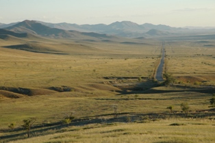 La route d'Altanbulag de la frontière à Oulan-Bator est extrêmement plaisante et nous a préparé le terrain . Le paysage est absolument beau, la route ondule doucement (jusqu'à ce que vous soyez plus près d'Oulan-Bator ou elle commence à monter ) elle est bien mieux entretenue que du côté russe. Les conducteurs sont également très prévenants, peut-être parce qu'ils ont l'habitude d'attendre les troupeaux de moutons et de chevaux qui traversent la route principale, et ils sont aussi très amicaux. nous avons été constamment klaxonné et salués de toutes manières. S'écarter de la route principale n'était pas un bon choix dans cette partie de la Mongolie car nous avons seulement vu des voies poussiéreuses de sable, qu'il seraient très difficiles d'aborder avec nos vélos chargés.