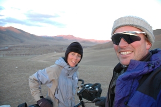 Pendant que nous regardions tristement le gué du fleuve trop profond pour les vélos, un homme appelé Chuck est venu nous disant de ne pas traverser ici parce qu'il y avait beaucoup d'autres gués après ceci. Il nous a invités à mettre notre tente près de sa yourte, comment pouvions-nous refuser ? Et alors nous avons été invités pour le thé (thé salé, hum…), et puis pour un repas car il allait faire cuire pour toute sa famille de toute façon, et alors nous pourrions rester dans sa yourte. Agneau fraîchement abattu… c'est ainsi que nous nous sommes sentis. Clairement tout ceci allait nous coûter et : le matin suivant $15 ont été demandés pour l'abri et la nourriture.