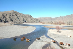 (à droite) le fleuve et les Yaks à