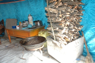 secteur simple mais efficace de cuisine à l'intérieur d'une yourte. Le grand wok