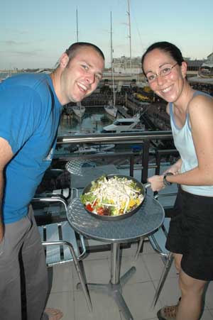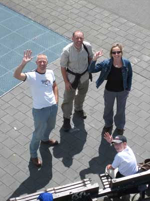 7 - 12 Janvier 2006 - Auckland Heureusement un ancien collègue de travail à nous, Simon, a un travail en cours à Auckland, ainsi nous avons réservé une chambre chez lui. Il s'est avéré qu'il y avait une vue fantastique donnant sur le port. Cette chambre était située près du viaduc, des bars et des restaurants. Simon nous a guidé pour une grande visite de tous les endroits intéressants - il a semblé connaître quelqu'un dans chaque restaurant ! Après un réapprovisionnement en combustible, une mise à niveau des approvisionnements, le remplacement des pneus usés, un approvisionnement en cartes et après avoir questionné les gens du pays au sujet des endroits ou aller, nous sommes partis pour la visite du pays des kiwis.