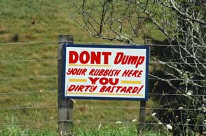 Les kiwis ont tous étés très amicaux jusqu'ici - mais nous ne voudrions pas les contrarier. Ne jetez pas vos poubelles ici. Vous, salauds malpropres !