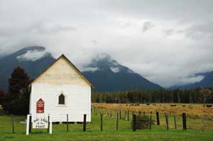 Moins de moutons, moins de collines, mais encore quelque barrières . Nous avons laissé les montagnes derrière nous et nous sommes arrêtés au milieu du plateau plat de Masterton. Après cinq gâteaux achetés dans un magasin (notre record pour le goûter jusqu'ici). Terry a finalement accepté de se faire faire une coupe de cheveux. Il a choisi le magasin de Jim, qui a habilement combiné deux magasins en un : Il est à la fois coiffeur et buraliste, quoique la loi n'autorise pas à fumer au travail. Les deux dames coiffeuses ne se sont pas du tout occupé de Terry et ont continué leur conversation sur la façon d'expliquer leurs règles à leurs filles. « C'est comme avoir un oeuf, mais sans la coquille » a été choisi comme meilleur exemple. C'est stupéfiant les choses que vous pouvez apprendre quand vous allez vous faire couper les cheveux ! En soirée, nous avons commencé à monter la pente de Rimutaka, qui est longue de 10 Kilomètres et évite la route SH2 très fréquentée jusqu'a Wellington. Il y a 2 kilomètres à voie unique, un peu difficiles avec les vélos chargés, avant de suivre une voie facile au sommet, où il y a un emplacement de camping fabuleux. La route suit une vieille ligne ferroviaire, qui a relié Wellington à la plaine de Masterton de l'autre côté de la chaîne de montagne de Rimutaka. La pente était célèbre pour son inclination (1/15 ou 6.5%) et le train avait un dispositif horizontal spécial pour le garder sur la voie. La ligne est maintenant hors d'usage car les techniques modernes ont permis à un tunnel de 8 kilomètres de long d'être creusé sous la montagne.