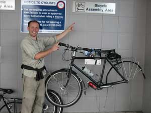rechange Rohloff et a été le plus utile. Pistes cyclables et cartes. Nous employons les guides "Peddler's Paradise" (disponibles dans les plus grandes librairies) pour voyager autour des deux îles nous avons acheté un atlas routier. Et si vous n'en avez pas un avant de venir à Nouvelle Zélande, vous vous rendrez compte que le port d'un casque de vélo est obligatoire ici (à la grande consternation d'Isa !). Autrement cela vous en coûtera une amende de $55 dollars ! Information pour les cyclistes à bord du ferry assurant la traversée entre l'île du nord et l'île du sud.