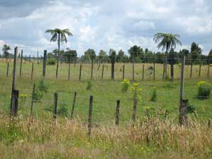 La plupart des arbres ont été coupés, mais les arbres choux sont encore debout.