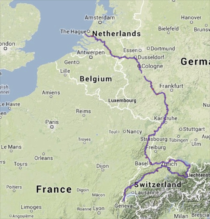 The current plan is to spend 2 or 3 months cycling with 2 kids (in bike seats) from the delta to the source of the Rhine. You can find out more on our current trip page.