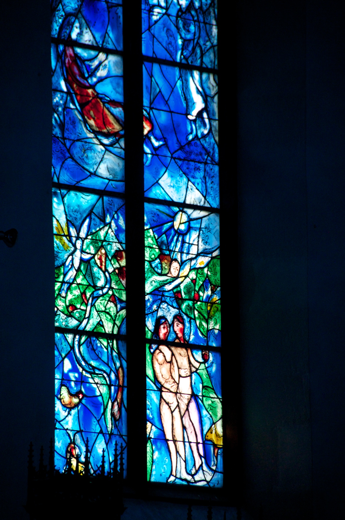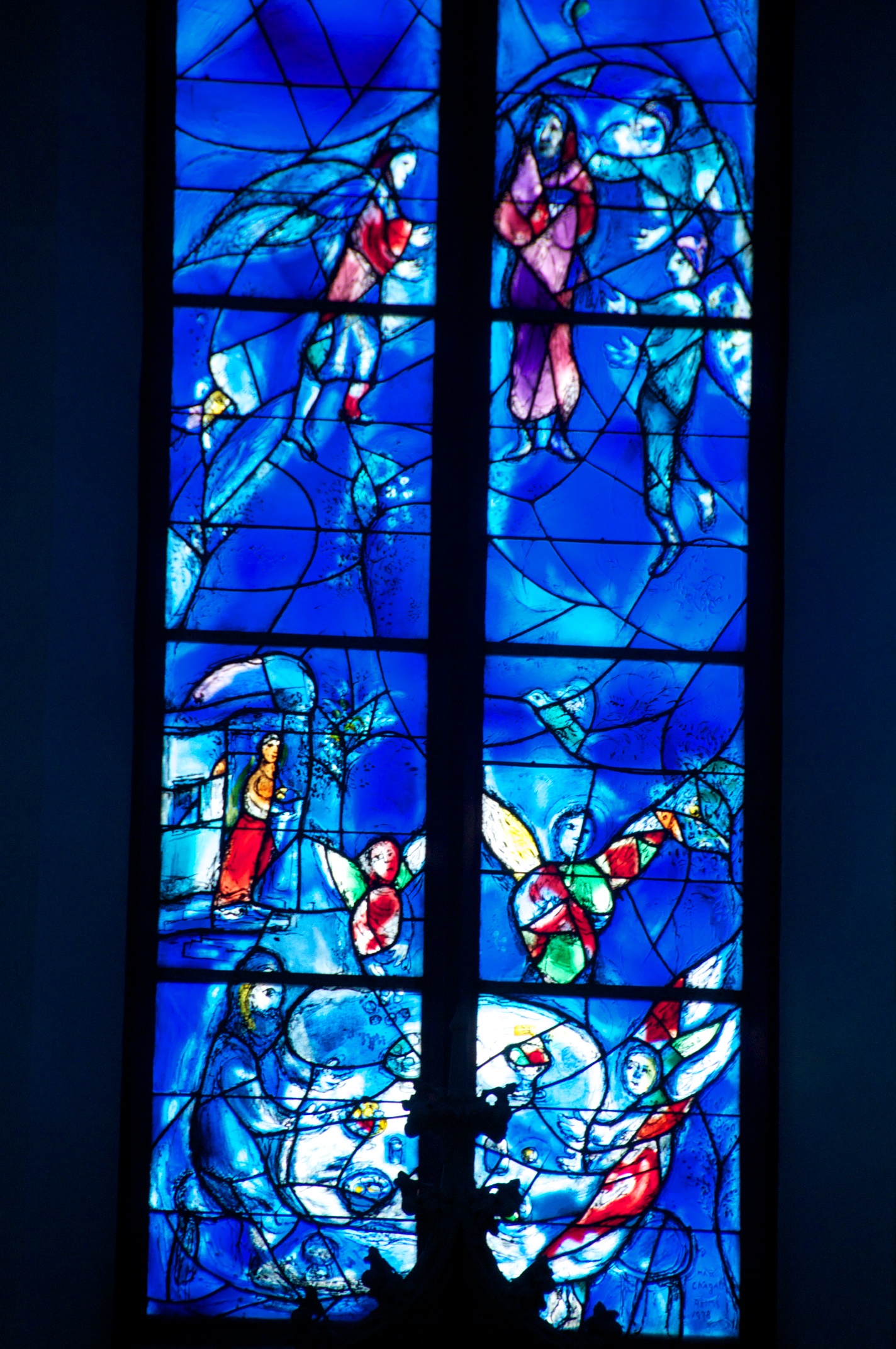 Everything turns blue - St Stephan church in Mainz with stained glass windows by Marc Chagall. Detail 1 Detail 2