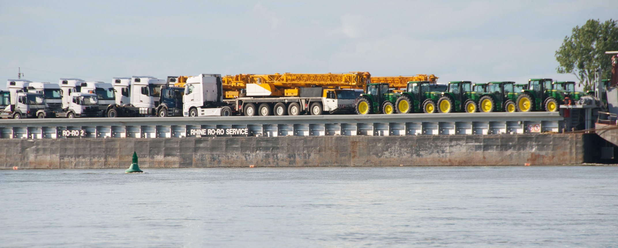 A ship with new lorries, tractors and mobile cranes - perfect entertainment for young boys. Detail for Dad's here