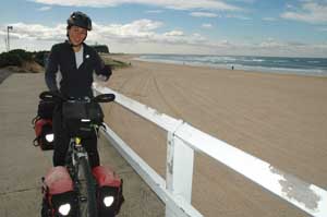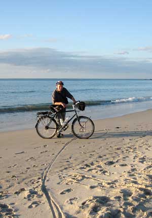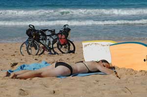 Narrabeen beach - a moment of quiet reflection before our last stretch of cycling into Sydney |