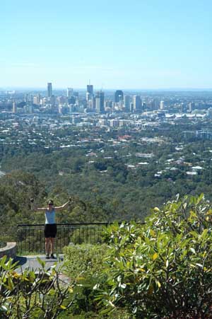 1st to 3rd May 2006 - Brisbane to Lamington National Park - 184 km Our first day driving out of Brisbane started with a great climb to Mt Coo-tha. The views out on to Brisbane, Moreton Island and the Ocean were great. Below us was another of Brisbane's botanical gardens, where we spotted our first snake, looking all angry and standing up. "Just a tree snake" said a guy walking past "I have lots in my garden". Well, what kind of snake will get an Ozzie startled and moving back? We were left to ponder. The ride to Ipswich was rolly, against the wind and mainly along big roads. We only did 50 km but climbed 1000m to get away from Brisbane. We recovered in one of Ipswich parks (there is no campsite here) amongst huge ants, broken bottles and the odd, used syringe (all the public toilets around the Brisbane area have syringe disposal facilities).