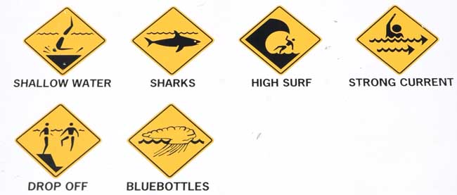 A typical beach warning sign on the Central Coast - Australia may be blessed with a huge number of idyllic looking beaches but the prominently placed warning signs can be rather off putting!