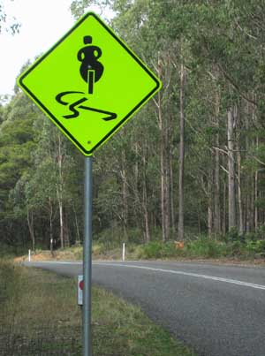 Care should be taken on all rural Australian roads - a Koala can make a mess of a bicycles front wheel. Some roads even have a "Koalas Killed" count comparing performance year by year |