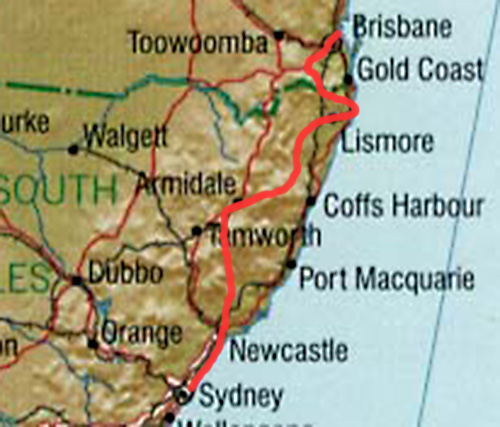 We arrived in Brisbane in late April 2006 and took a bit less than one month cycling to Sydney (see our statistics below). We mainly cycle inland in Southern Queensland and New England. We only touched the coast at Byron Bay and from Newcastle to Sydney.