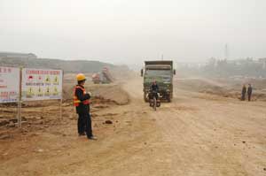 23rd November 2005 - Tongchuan to Xi'an 107km We started off early and luckily the road was mainly downhill and even totally flat in the plain surrounding Xi'an. Our road map gives no clue about the relief of the area and we did not know what the day would bring and whether we would be able to reach Xi'an. The locals misdirected us towards the expressway to Xi'an. We were quite annoyed as we carefully managed to avoid getting on it for the last few days (it follows closely the G210) and we know bicycles are not allowed on it. We were on the slip road to the highway considering our options: go onto the highway and fear the police or go back on our tracks for a good few kilometres. And at that moment came huffing and puffing a grandpa on his rusty old tricycle with a trailer, straight onto the highway. This must have been a sign - so we followed him. The next 42 km to Xi'an, which could have been dead boring, turned out one more time to be an eye-opener. A bunch of school kids on bikes came down the motorway the wrong way. There were many bikes, slow "put-put" lorries and some road sweepers dusting the fast lane! We really wondered what they have done in their previous life to deserve such an awful job (remember Chinese lorry drivers are rather fierce). They even did not have a proper dustpan and brush - just homemade twig brushes and a piece of cardboard!