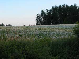 There is a great deal of forests in the Czech Republic. The Western area from Cheb onwards is rolling hills covered with pine forests over the summits. Lower down is a mixture of arable (the ubiquitous rape seed) and open meadow land. The meadow land in late May makes a wonderful sight - memories of being about 6 years old and the farmer making hay and straw bales came flooding back. It is a sight which is not seen very often these days in the intensive agricultural environment of the UK. With the meadows come all sorts of birds and insects - the best being the skylark - always an evocative sound of early summer. With the large amount of woodland lining the roads we have been startled on a number of occasions by deer jumping out on to the road and running alongside us before leaping back in to the safety of the forest - quite scary on a downhill at 50 km/hr. Red Squirrels abound with their lovely big fluffy tails - none of those ugly grey tree rats found in England. Even the odd black (red) squirrel. As we moved further the instance of storks has increased, initially only in the manmade nests atop 10 metre posts, but latterly just stood in a field watching the world go by. |