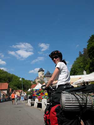 26th May 2005 - Roztoky to Prague - 68 km By then, we had no illusion on the type of day this was going to be: it was going to be hilly because that is the way the roads go here and it was going to be hot, up to 30C! We headed slightly South, through Beroun to Karlstejn castle, which is a must-see in terms of Czech castle. The first sight of Castle one turns the corner into the small, pedestrianised approach street is quite striking.