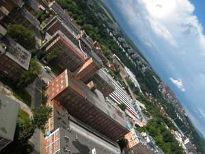 5th/6th June 2005 - Zlin with Richard & Dana Zlin is known for one thing - it was the birthplace and original manufacturing centre of the BATA shoe empire, created by Thomas Bata in the early part of the 20th Century. Thomas Bata tried to create an ideal society based around his shoe production manufacturing empire. The centre of the town included all the factory production units and the global headquarters of the BATA shoe company. Shopping, cultural, hotel, hospital and sporting facilities were provided for the work force. The surrounding hillsides were dotted with the workers accommodation. Architects of world renown were employed to provide the living spaces - providing open spaces, greenery and space for people and work within a design that was both functional and cheap to build.