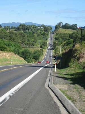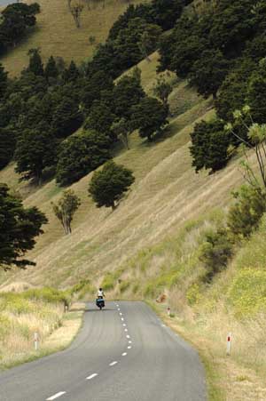 A sweeping descent on the Coromandel peninsula, the road either goes up or down - there is no in between |
