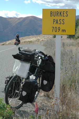 The top of Burkes Pass - easy except for that vicious "Nor Wester" (wind)