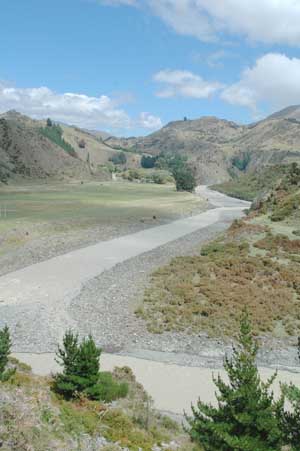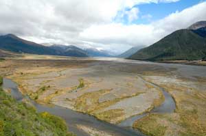 17th February 2006 - Hanmer Springs to Sylvia Flat Hot Springs - 61 km After a quick dive into Hanmer Springs hot springs, we turned westwards to Lewis Pass - not quite a direct route to go to Christchurch, but we wanted to see the Lewis and the fierce Arthur Passes for ourselves. We climbed all day on a road that was too wide and too fast (especially compared to the Molesworth road). Terry has now a new favourite whinge: straightened and widened roads. There were many roadworks on that section and all seem to be part of a devilish plan to take the fun out of cycling. The already quite steep winding road is turned into a wider and even steeper road. No turns, no wiggles: the poor cyclist is face with steep wide straight nasty slopes followed by even steeper downhill. Great for the cars, obviously! (except the cars no longer have bends to negotiate so they drive faster allowing the local police to raise more money in speeding fines)