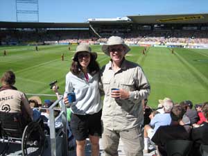 Once on the road, a few records were set, to Terry's delight. It was our flattest day ever (we climbed 32 m) and also our fastest day with an average speed of 28 km an hour! Woohooo! 22nd to 27th February 2006 - doing many things but cycling in Christchurch We had a rather busy stay in Christchurch as we had to deal with a worn out wheel rim for Terry, a laptop shaken to death on the Molesworth road and an international cricket match (Isa had a compulsory invitation to this one)! |