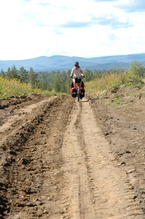 The road was beautiful though as the forest, mainly pine, birch and larch, has put on its autumn colors. The horizon wass jagged and we were clearly into the mountains. In the evening, we had no choice but to camp in the forest, despite our fear of tick bites. We covered up well and went for it through the high grass.