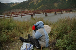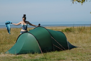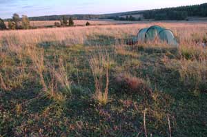 Later, as we were preparing for bed, three loose dogs started staring at us from a distance. In the dusk, it was quite spooky and we armed ourselves with big sticks, not an easy task because most of the small branches have been burned in the fires the Russians always light whilst camping. By ten o'clock, we were finally ready for a very noisy night as we were also aware of a mouse which had visited our bags the previous night. But nothing happened. Instead a wind from hell rose in the middle of the night and the rain started pouring down.