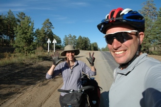 This part of our cycling trip was getting better and better. The landscape is truly scrumpsious and with the perfect weather, it was a real pleasure to ride. The rivers were a glorious blues and the vegetation had fabulous autumnal tinges. We stopped at Novoselengisk to refill with water and food. The town is so run down that the drinking water main was also broken and we took water from a big tank on wheels that the inhabitants had to bring along.