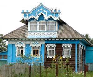 Typical Russian holiday homes known as Dacha's. These collections of wooden buildings can be found in the countryside around all towns and cities.