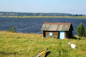 (right)A small Siberian village, on the shore of Lake Baikal