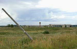 View across the now disued cereal fields and the derelict kolkhoze buildings, abandoned by the local farmers. Huge areas of land once under intensive cultivation have now been left to gradually return to wild land.