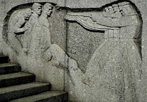 (right) More Soviet realism in a war memorial.